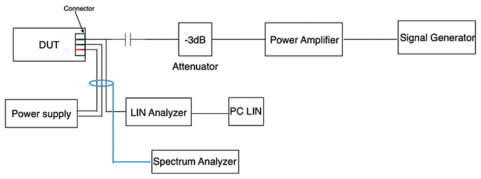 In one recent example, an automotive remote controller unit experienced immunity issues during the BCI test in an accredited EMC testing laboratory. The module’s local interconnect network (LIN) lost communication in the frequency range between 5 and 15 MHz.