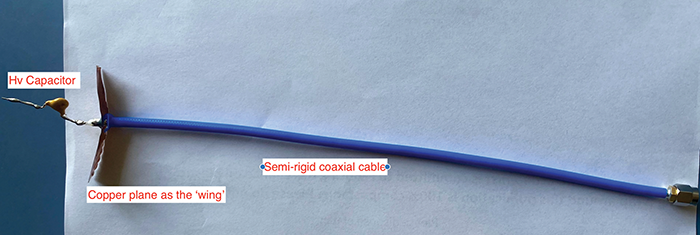 - The tip of the coaxial cable signal line is then soldered to a 250V capacitor. The value of the capacitor depends on the level of interference current one would like to inject (see the next section).
