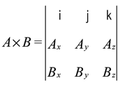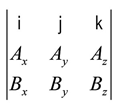 In what is known as “determinant form,” the cross product of two vectors A and B can be expressed simply as: