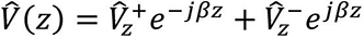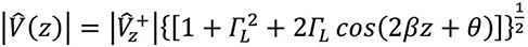 Utilizing Euler’s formula for a cosine, we arrive at the expression for the magnitude of the voltage at any location z away from the source as