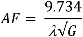 To calculate AF, two pieces of information are required: 1) λ, which is wavelength in meters, and 2) antenna gain (G) as a power ratio. Once this information is known, then AF is calculated using this basic formula: