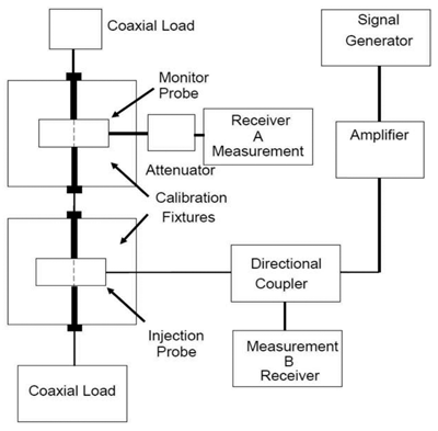 In bulk cable injection (BCI) techniques, the test signal is inductively coupled. Faraday’s law predicts that an induced voltage in a circuit loop with the resultant current and voltage distribution is dependent on the various impedances presented by the cable under test. For this reason, the test method under MIL‑STD‑461G reverts to an older method than was used in MIL‑STD‑461D in which, instead of leveling primarily on the cable-induced current, the pre-calibrated forward power is the primary target. With this older method, which is found in SAE ARP1972, and RTCA DO-160C/D, the relationship between the BCI-induced cable currents and those induced by radiated fields will agree more closely with respect to shielded cables. In these cases, testing is conducted where either the calibrated forward power or injected current limit is achieved (whichever is less severe).