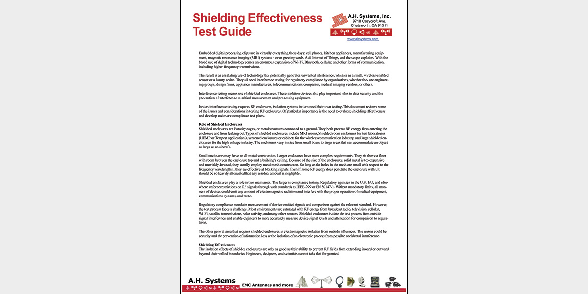 The RF shielded enclosure is usually indoors, thereby protected from the weather while also eliminating concerns about ambient RF emissions.