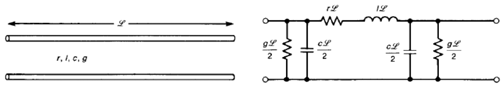 This was amazing an insight. Heaviside realized that the use of two conductors in the telegraph transmission line resulted in the capacitive and inductive properties of the line. (This had not been recognized before.) He correctly understood that the capacitance and inductance are continuous along the length of the pair of conductors and therefore could be represented as either lumped or distributed components along the transmission line (Figure 11).