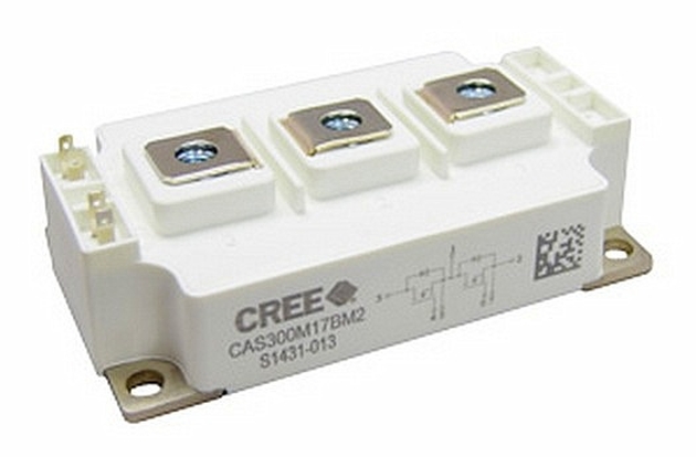 Cree, Inc. continues to extend its leadership in silicon carbide (SiC) power device technology with the release of the industry’s first all-SiC 1.7kV power module in an industry standard 62mm housing. Powered by Cree’s C2M™ large area SiC chip technology, the new half-bridge module exhibits an impressive 8mOhm on-resistance and 10-times higher switching efficiency than existing silicon (Si) module technology, capable of replacing Si IGBT modules rated at 400A or more. The breakthrough performance of the new 1.7kV all-SiC power module allows design engineers to simultaneously reduce the size and cost of magnetic and cooling elements while achieving superior system efficiency and reliability. Unlike existing silicon-based systems in motor drive, grid-tie and utility scale solar inverter applications, the new Cree® power module also enables lower production costs and the development of smaller, lighter products with a lower overall total cost of ownership.