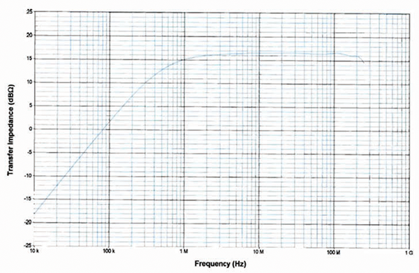 The transfer impedance is specified in dBΩ instead of the values in Ωs