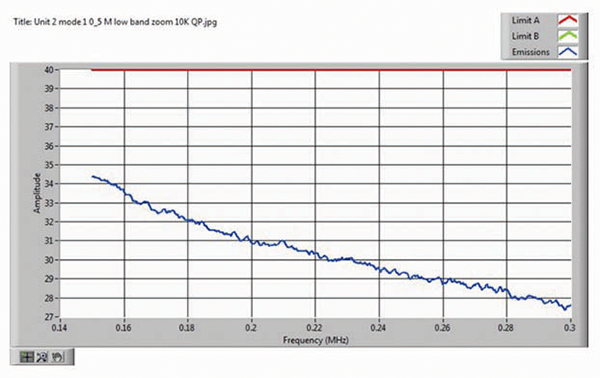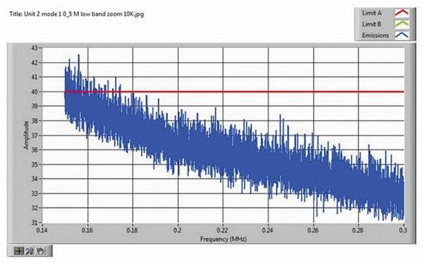 Since the peak detector measurement failed, it was followed by the average and the quasi-peak measurements, which passed.