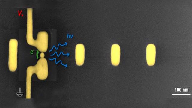 Physicists then took a gold nano particle and placed it directly into the active element, taking care to ensure it was simultaneously touching one wire of the element and remaining exactly one nanometer away from the other wire in the device. This narrow gap can be crossed by electrons once voltage is applied, resulting in something known as quantum tunneling. The end result is a powerful, incredibly small antenna capable of emitting in a specific direction.