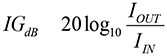The voltage and current gains in dB, VGdB, and IGdB, respectively, are defined as