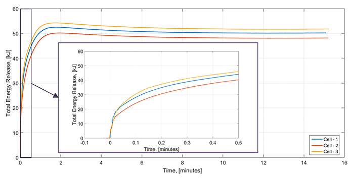 - Evaluation of the ultimate fate of the energy released (i.e., is the heat released contained within the vented gases or in the cell body);