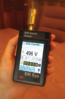 ESD Event Indicators, such as the one shown in Figure 8, count ESD Events above a set threshold and show their relative strength on an LED bar. The readings and the thresholds are relative, but the instrument is fairly inexpensive and is extremely easy to use. It also offers separation of CDM-type ESD Events from other types of electromagnetic emission.