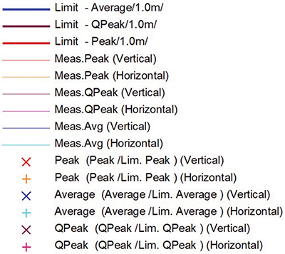 Radiated emissions were measured in the frequency range of 30-300 MHz. Figure 9 shows a reference legend for these measurements.