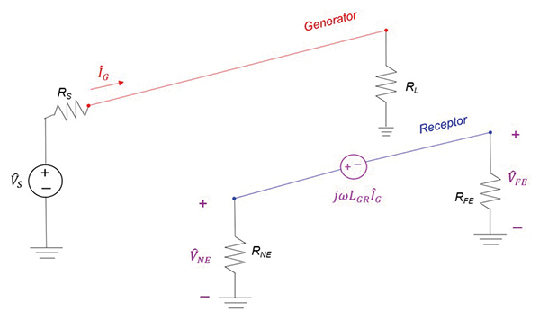 In this model, and are the inductively-induced noise voltages across the near- and far-end resistors, respectively. LGR – is the mutual inductance