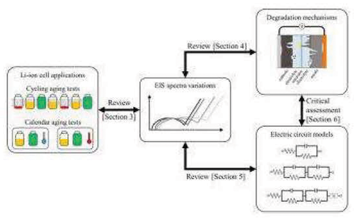 As most research study referenced, EIS was considered as a comprehensive description of battery structures as shown in Figure 3. Typical EIS was conducted by measurement of applying an AC potential to an electrochemical cell and then measuring the current through the cell under various frequency, usually from frequencies as low as 1mHz to as high as 1MHz.