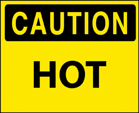 Figure 5: A “CAUTION BURN HAZARD” anodized aluminum plate applied on a hot surface. (Image courtesy of Clarion Safety Systems © 2012).