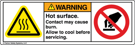 Figure 3: The combination of the ISO “Hot Surface” symbol and the “Do Not Touch” symbol communicates both the nature of the hazard and how to avoid it. (Image courtesy of Clarion Safety Systems © 2012).