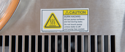 One of the things you must pay attention to when labeling your product for hot surfaces is the need to take label materials durability into account. Simply put, heat can destroy things. Adhesives dry out and lose their adhesion, causing labels to fall off. Label base materials and overlaminates shrivel up and crack. Inks discolor. So the first thing to consider is whether or not you can mount the label on a surface that does not get hot but is still close enough to the hot surface so the label will be associated with the hazardous location. If that is not possible, you can mount the label on a plate that is raised above the hot surface so air flows between the two, providing a cooler surface for the label to adhere to. You can also choose to make your safety label out of heat resistant materials. Clarion uses anodized aluminum labels and plates when a safety message must be placed directly on a hot surface (Figure 5).