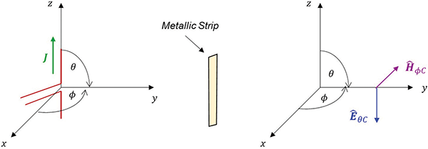 Now a word about the applicability of the foregoing analysis. In the region near the lightning strike point, the ground resistivity ρ is highly variable. In particular, soil breakdown can happen when the electric field overcomes the soil ionization gradient [8]. Soil ionization occurs when the electric fields at the ground electrode surface become greater than the ionization threshold of approximately 300 kV/m [9]. In this case, in the region surrounding the current striking point, local transverse discharges start from the lightning strike point and stop at the points where the electric field drops below the critical breakdown strength. An illustration of this point is shown in Figure 6.