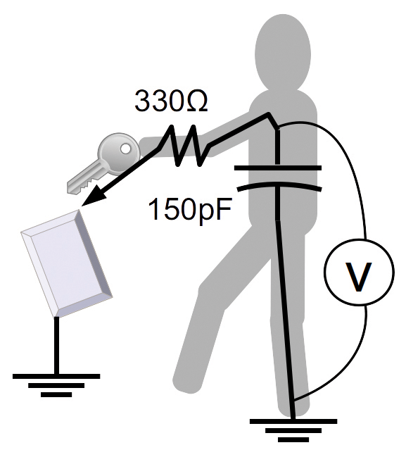 ESD qualification requirements for systems rely heavily on ideal discharge models such as IEC 61000-4-2. “IEC Gun” emulation (e.g., reproduced in the lab) of the discharge into a system represents a “typical” discharge resistance of a hand-held metal object by a “typical” human who is charged to various test voltage levels. 3D field solver and nodal simulation (e.g., reproduced in a virtualized computer model) methods can also be applied to help speed the comparison of different configurations and test conditions.