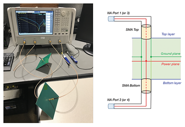 In Part I (see [1]) we investigated two four-layer PCBs with the power- and ground-plane pairs spaced 3 mils (Case A), and 30 mils (Case B) apart, respectively. The boards were populated with decoupling capacitors of the same value (1nF), placed at three different distances from the measurement point, as shown in Figure 1.