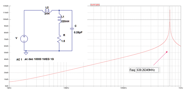 Figure 4 shows the simulation results for a 220-nH inductor together with its realistic parasistics.