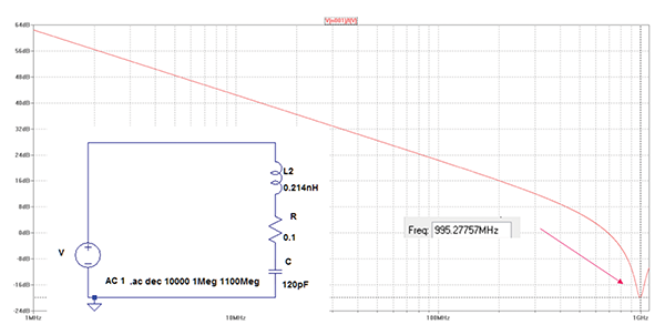 Figure 6 shows the simulation results for a 120-pF capacitor together with its realistic parasistics.