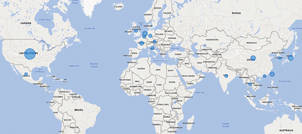 The Industry Council received 70 individual responses from at least 35 companies from more than 16 countries. The distribution over the globe is illustrated in Figure 1. Multiple responses per company were encouraged because of the wide diversity of products, customers, and requirements. This makes it likely that different approaches to latch-up testing may be used even within one company.