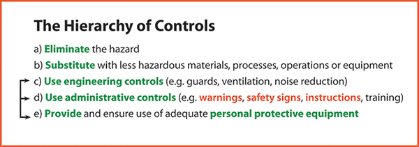 Figure 1: Risk reduction techniques and examples from the hierarchy of controls