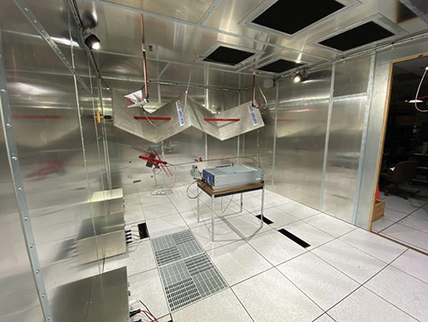 The EMC boundary is evaluated early on 3D mechanical CAD models to ensure that there are no openings or seams that could radiate or become susceptibility concerns during immunity testing. Shielding effectiveness testing is performed on early mechanically good hardware in a reverb chamber, as shown in Figure 7.