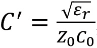 Here, εeff ≈ (ε + 1) / 2, d is the thickness of the prepreg and W is the width of the transmission line. From this formula, we can further calculate the value for capacitance per length by