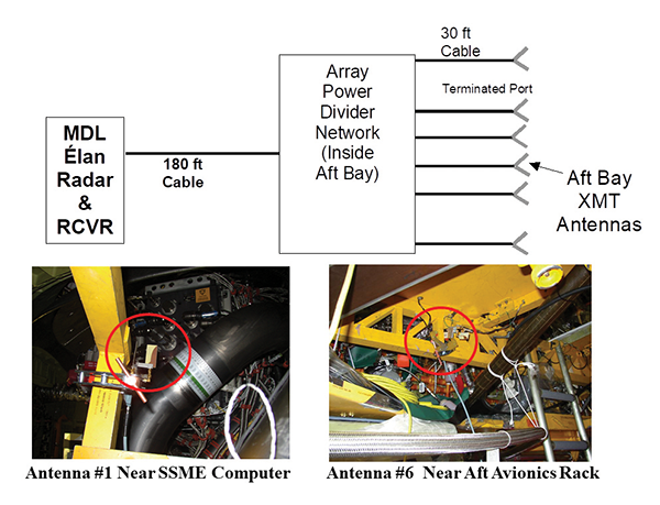 After the acquisition of the NDR system was approved, Shuttle EMI engineers realized these three new monitoring radars would emit frequencies to which the Shuttle had not been exposed during previous launch and ascent operations. The new “debris” radars were to operate in two specific frequency bands, with the C-band radar emitting an FM sweep continuously from 5.45 GHz to 5.95 GHz, and the new X-band “Weibel” Doppler radars tunable to any fixed frequency between 10.0 GHz to 10.55 GHz. Clearly, it became imperative to verify that the new C-band and X-band debris radars would not interfere with any existing Shuttle system during the ascent phase. Since the aft bay of the Shuttle houses the critical Space Shuttle Main Engine (SSME) controllers, NASA was particularly concerned about RF exposure of sensitive equipment inside the aft bay to exterior radar RF levels from outside the aft bay. Fundamental knowledge of the RF shielding characteristics was required before Discovery could be certified for safe flight.