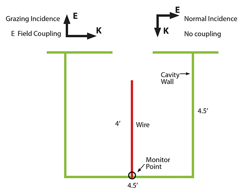 The problems all assume an 18-inch square aperture in a perfectly conducting infinite ground plane. The source wave shape is a plane wave sin-squared pulse having a full width of 50 ns with a 1 V/m peak amplitude. Both open circuit voltages and short circuit currents on a 2 mm diameter wire are computed.