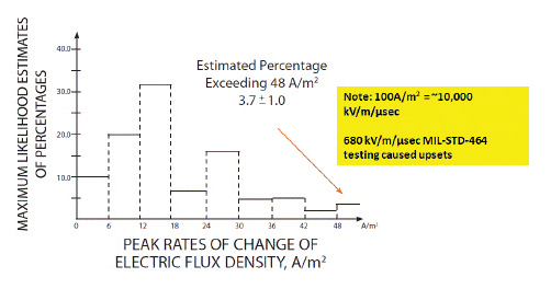 Also in Figure 8 is a chart from the Boeing CEM results for cockpit fields, which are between 900 and 5000 kV/m/µs.