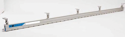 Air assist bar ionizers are ionizing bars with emitter points mounted in nozzles supplied with a compressed air supply to enhance the operating range. A typical example is shown in Figure 1. The length of the bar is usually determined by the application and typically ranges from 600 mm to 3000 mm.