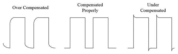 Figure 19: (Left) Over compensated probe, (Middle) a compensated probe, (Right) an under compensated probe