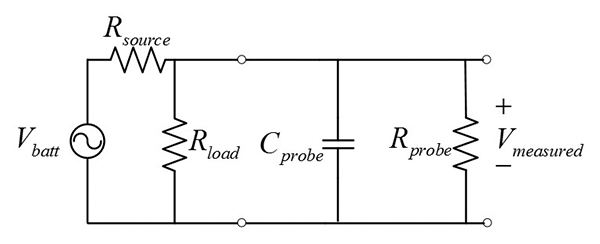 Before we start adding these characteristics together to create a basic probe model, we start with a basic circuit as shown in Figure 3, a probe connected to a voltage divider.
