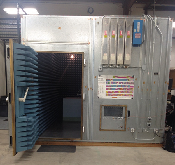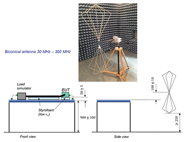 Finally, the measurement setup inside the ALSE for the radiated emissions measurements using a log-periodic antenna is shown in Figures 17 and 18.