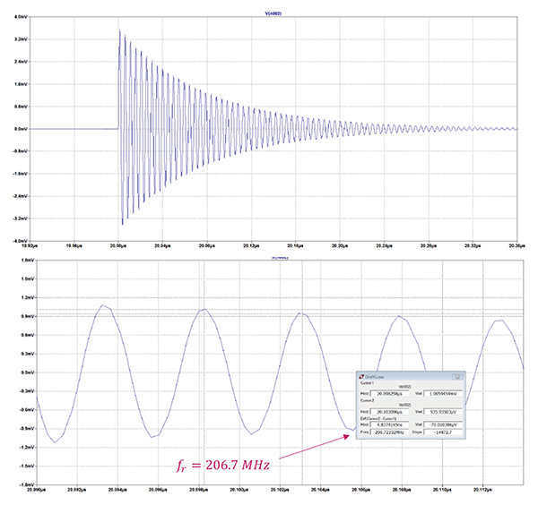 The resonant frequency in a circuit shown in Figure 6 , without a snubber in place, is