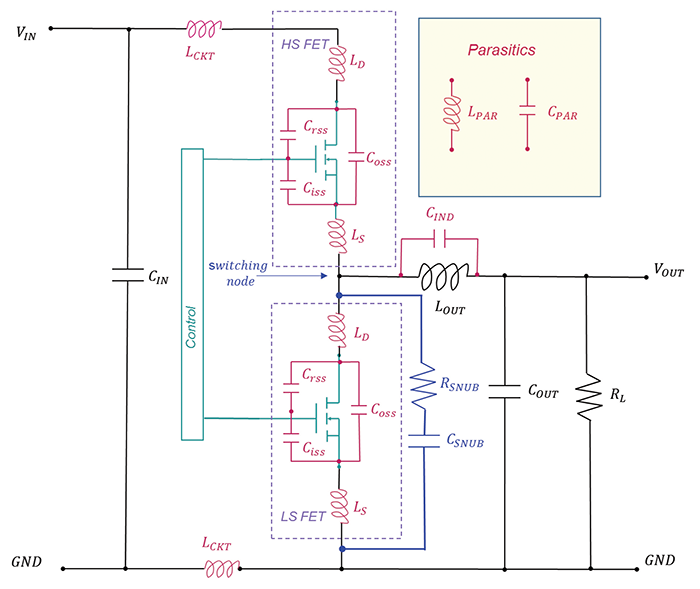 Figure 6 shows the same buck SMPS with the parasitic capacitances and inductances explicitly shown [3].