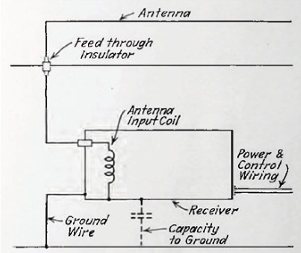 Figure 1 shows a WWII-era handbook drawing of such an installation.3 Handbooks of the time went to great lengths showing photographs of poor and good radio antenna lead-in installations.4 Controlling the loop area of the lead-in over ground relative to that of adjacent culprit noise emitters (crosstalk) was emphasized.