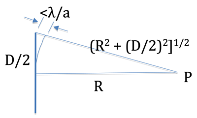 In Figure 2, the circular arc struck between the radius labeled R and the radius that is its hypotenuse marks off the length of the hypotenuse that is greater than R and denotes it as a fraction of a wavelength. The value we assign to “a” depends on the application of interest.