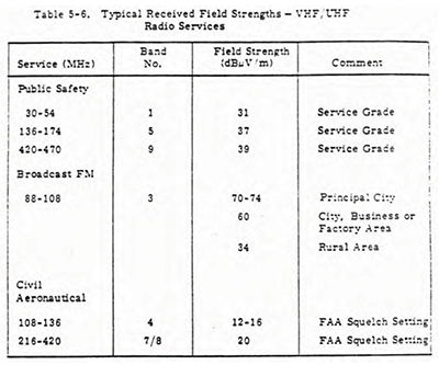 Figure 4 is an example excerpted from Reference 14. Such specifications state that a certain quality of baseband signal results when a specified level of broadcast signal is received. From this level, an EMI limit may be counted down using the signal-to-noise ratio required to get the specified baseband quality. Thus, it is completely natural to specify limits protecting such services in terms of field intensity, especially when the compliance measurement is made in the far field (or nearly so).