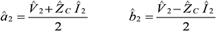 The incident and reflected waves are related to the voltage and current waves at each port as [2], [3]