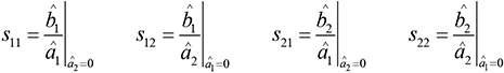 (Note: s parameters are complex numbers and as such, technically, we should denote them with a hat, i.e., as