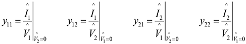 Thus, the y parameters can be obtained from the voltage and current measurements when each port, one at a time, is short-circuited. The remaining port parameters are obtained in a similar manner.
