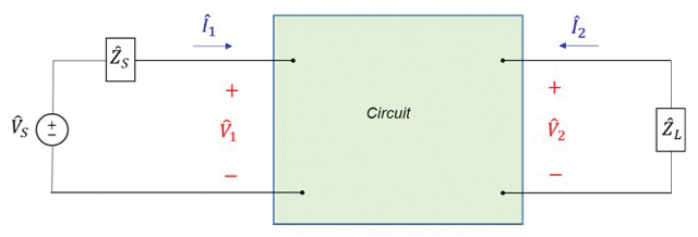 In the typical application of a two-port network, the circuit is driven at port 1 and terminated by a load at port 2, as shown in Figure 2.