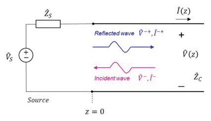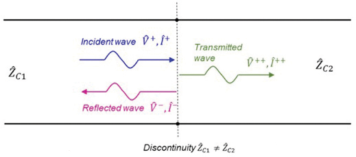 Next, let’s discuss the reflections along a transmission line discontinuity. Discontinuity along a transmission line can be caused by many different factors. The easiest case to consider is when the characteristic impedance of the transmission line changes (from