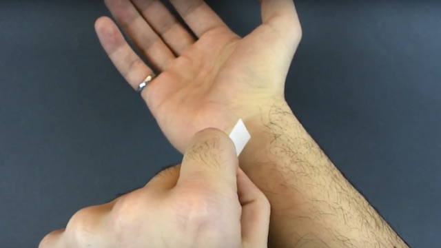 The stickers are made of paper to reduce cost and waste. However, they need to be able to survive when pressed against skin, which has a habit of becoming sweaty or dirty — particularly with exertion. To prevent the paper from degrading too quickly, scientists coated it with molecules that keep away bacteria, water, dust, and oil.