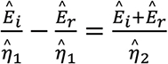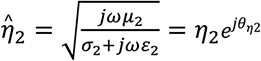 where the propagation constant and the intrinsic impedance in medium two are given by