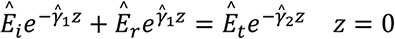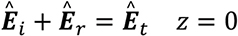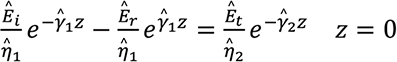 At the boundary of the two media, the tangential component of the electric field intensity is continuous [6]. Thus,